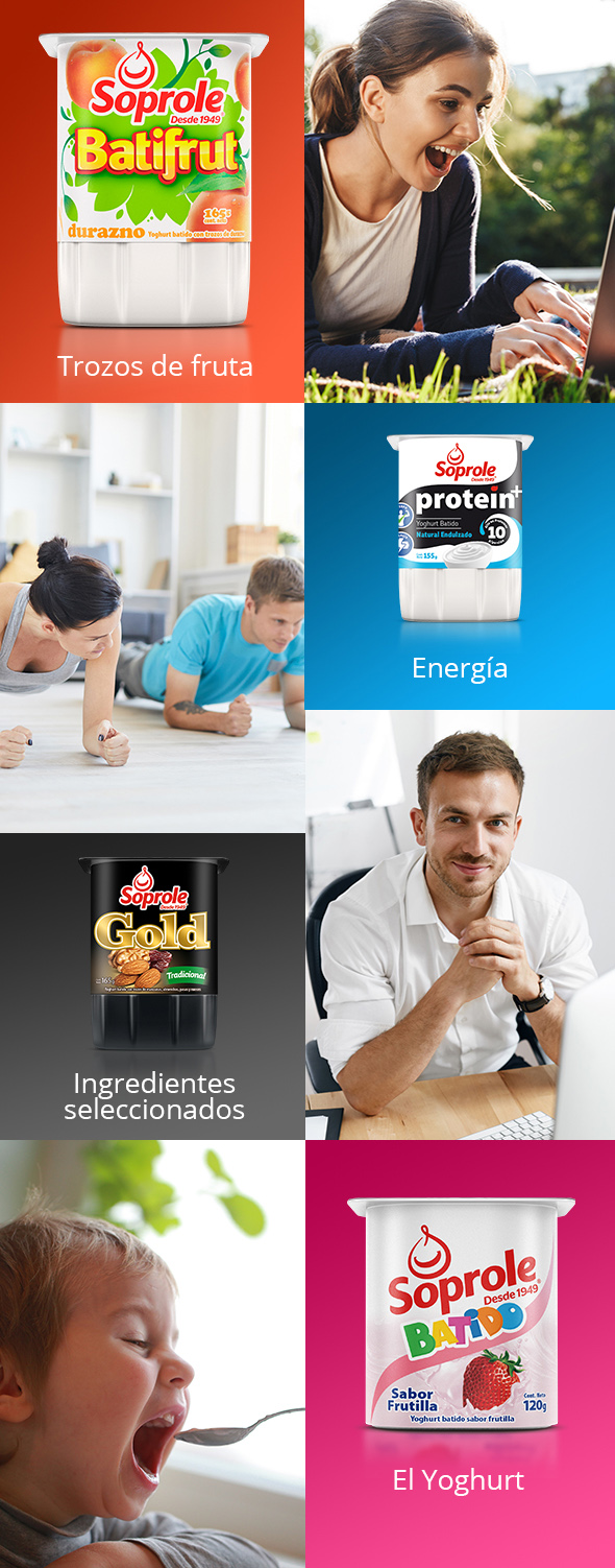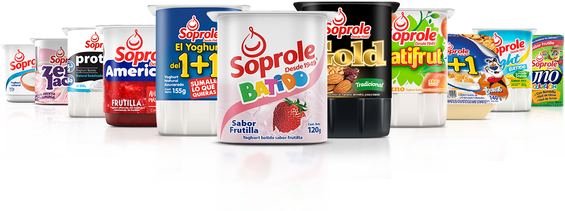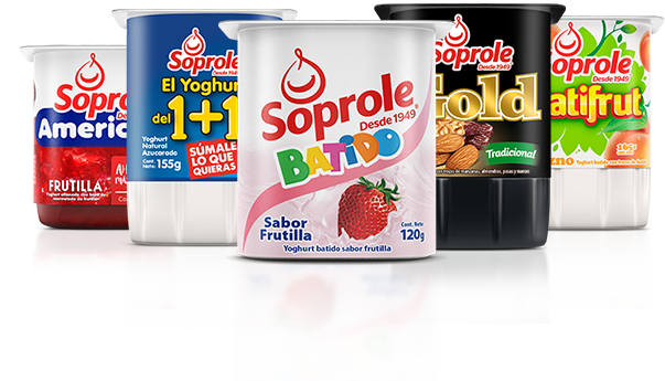 Cada uno de los yoghurt Soprole, con sus diferentes sabores, combinaciones e ingredientes, marcas y propuestas; siempre ha recibido tu preferencia y la de la gran mayoría los consumidores. Ese sabor, nuestra gran motivación, ha hecho de los yoghurts Soprole los favoritos de niños y de toda la familia.